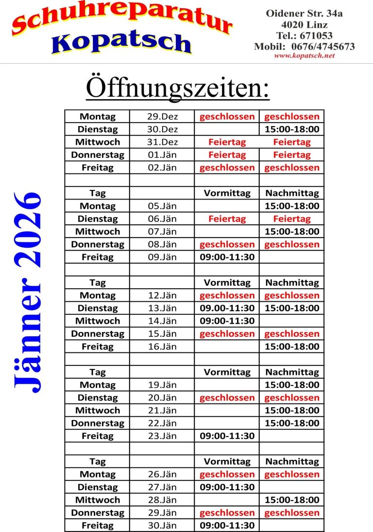 Schuhreparatur Kopatsch. Alle Rechte vorbehalten.